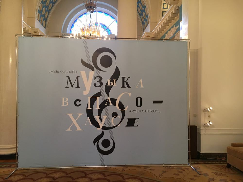 Задник сцены можно использовать как экран для проекции, оставив часть баннера белой, или изготовить каше с видеоэкраном.